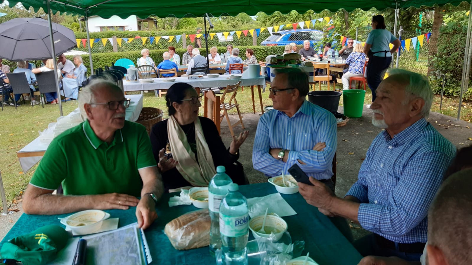 Spotkanie odbyło się w cieniu planów inwestycyjnych Urzędu Miasta Gdyni. Prezes ROD „Zielony” w swoim wystąpieniu przedstawił obecną sytuację ogrodu w świetle protestu naszych działkowców przeciwko planowanej budowie ul. J.Nowaka-Jeziorańskiego a mającej przebiegać przez środek ogrodu. Prezes wyraźnie zaznaczył, iż działkowcy nie są przeciwko budowie ulicy a protestują przeciwko jej przebiegowi przez ROD „Zielony”. Tym bardziej, iż kilka lat temu padła jasna deklaracja Urzędu Miasta w Gdyni, iż droga ominie nasz ogród. Natomiast w wystąpieniu Prezesa Okręgu Pomorskiego PZD w Gdańsku usłyszeliśmy o tzw. specustawie MON, która zagraża interesom działkowców. Po części oficjalnej nastąpiła wyczekiwana biesiada działkowców przy miłej muzyce i smakowitym poczęstunku - grochówka polowa, pieczony dzik, smalec ze skwarkami, smakowite ciasta.