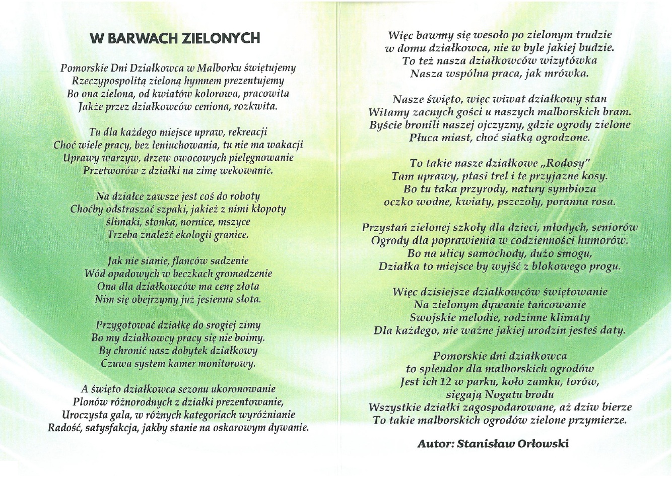 Wiersz "W barwach zielonych" autorstwa Stanisława Orłowskiego