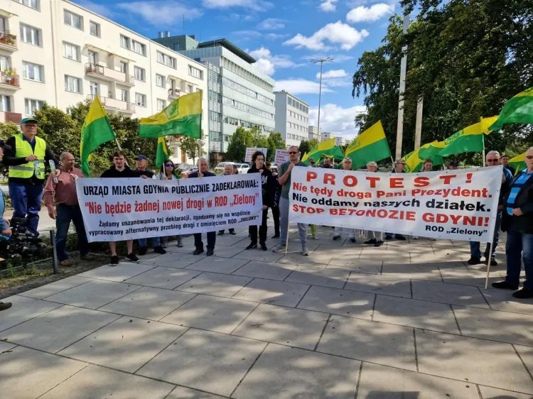 Około stu działkowców z Wiczlina protestowało we wtorek, 16 września, przed gdyńskim magistratem. Powód? Plany poprowadzenia przez teren ogródków ul. Jana Nowaka-Jeziorańskiego, która w przyszłości ma połączyć Dąbrowę z Chwarznem. Po proteście delegacja działkowców spotkała się z władzami Gdyni, które w obecności mediów przyznały, że w trwającej kadencji nie zamierzają rozpoczynać prac nad drogą. Najwięcej gorzkich słów od działkowców z ROD "Zielony" usłyszał wiceprezydent miasta Maciej Zielonka.