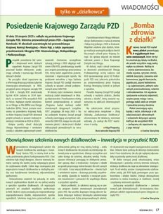 ● Chcecie być na bieżąco? Czytajcie „Wiadomości”! „Tylko w działkowcu” znajdziecie aktualne informacje nt. wydarzeń w Związku i w ogrodach! W tym numerze: „Posiedzenie Krajowego Zarządu PZD”, „Bomba zdrowia z działki”, „Obowiązkowe szkolenia nowych działkowców – inwestycja w przyszłość ROD”.