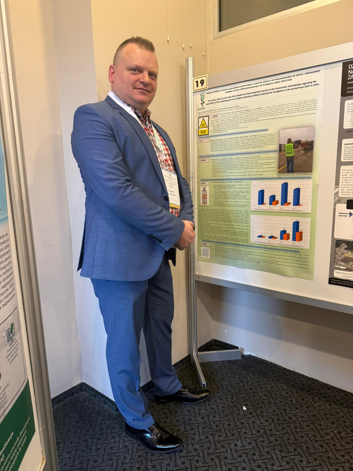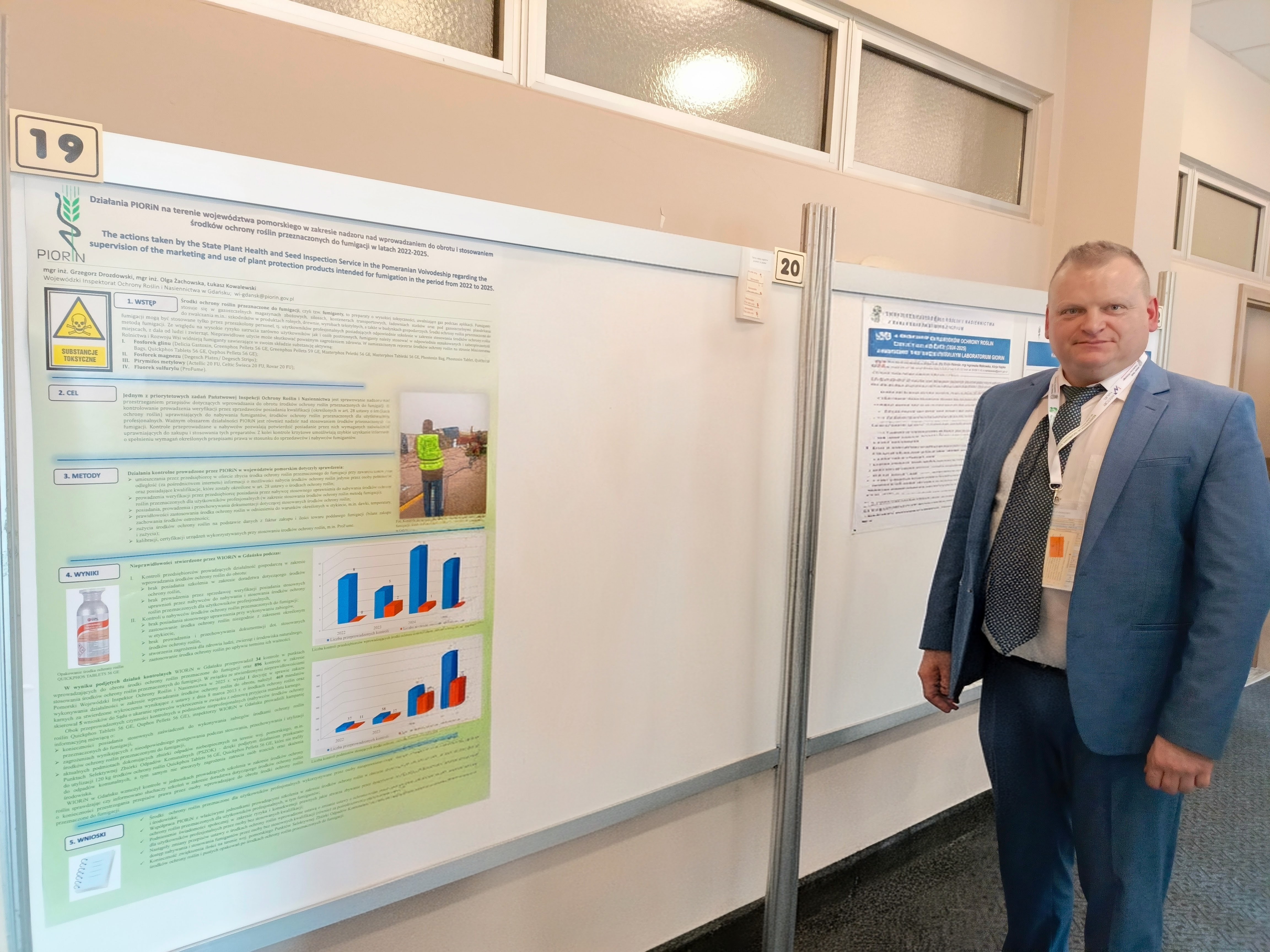 Zaprezentowany poster pt. „Działania PIORiN na terenie województwa pomorskiego w zakresie nadzoru nad wprowadzaniem do obrotu i stosowaniem środków ochrony roślin przeznaczonych do fumigacji w latach 2022–2025” dotyczył kontroli prowadzonych przez WIORiN w Gdańsku w związku ze stwierdzanymi nieprawidłowościami zarówno podczas sprzedaży, jak i stosowania fumigantów na terenie województwa pomorskiego.