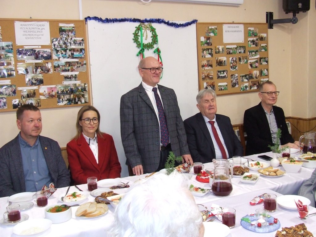 Tradycyjnie podzielono się symbolicznym opłatkiem, na stołach znajdowały się wigilijne potrawy przygotowane przez Działkowe Koło Gospodyń.